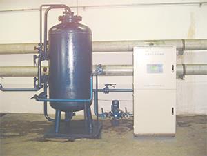 旁流水處理器,由鈦電極及外加電壓發生器組成。水在電極板組內電解,產生各類殺生因子,CLO2、O、H2O2、CL2、O3、HCLO等;這些物質具有強烈殺生效果,殺滅水係統內的各類微生物,如藻類、細菌等。水流經電極板內的強電場時,水分子發生變化,偶板矩增大,正負離子排烈整齊,使係統管道及設備不長垢,同時使已經結上去的水垢脫落,完成防垢、除垢任務。活性氧在管道上生成氧化膜,保護設備不被進一步腐蝕;細菌、藻類被殺死,微生物腐蝕被抑製。因多介質過濾器的作用,係統內淤泥等各類沉積物被去除,係統內局部腐蝕被清除,同時水質清澈、透明。